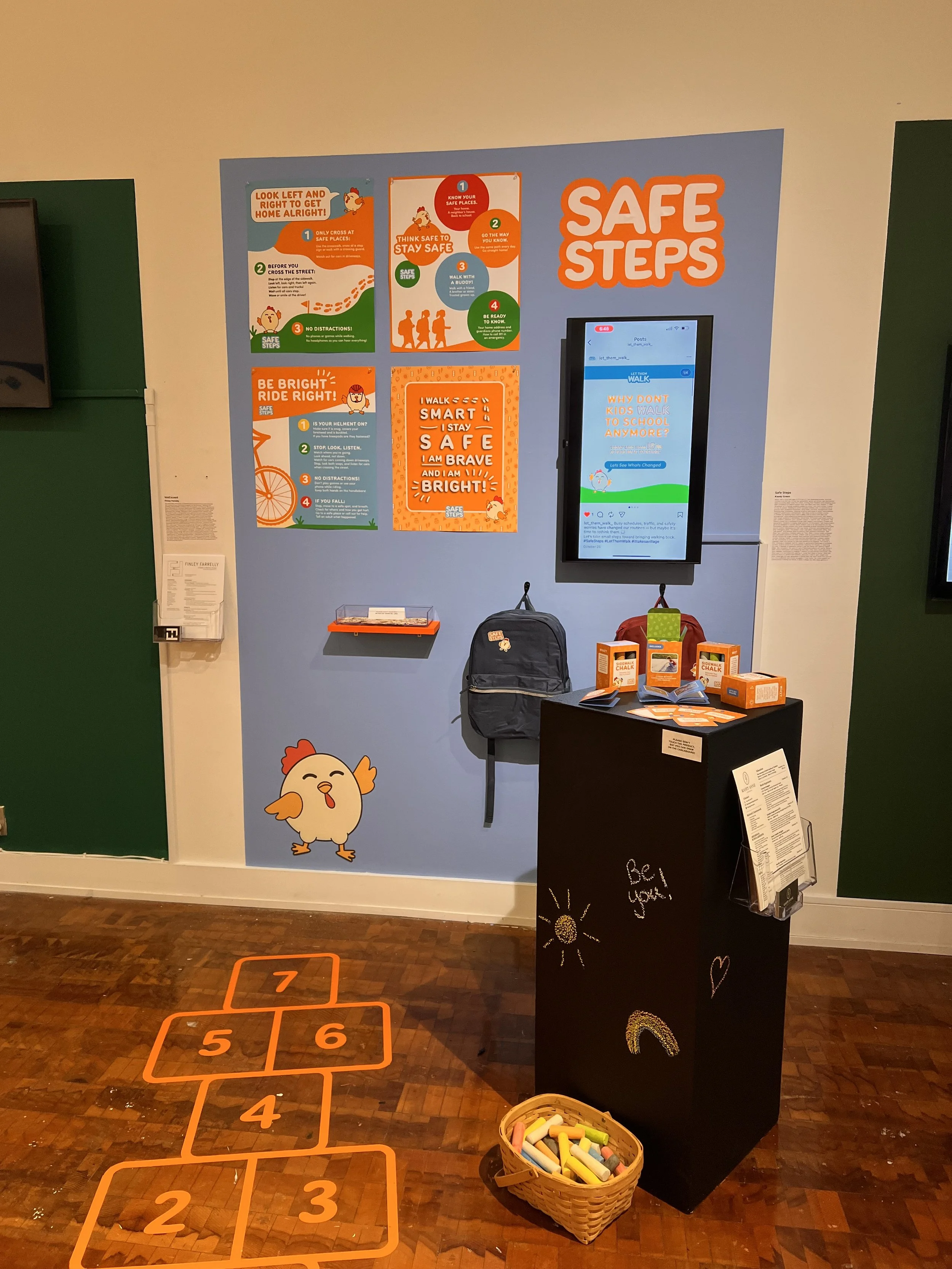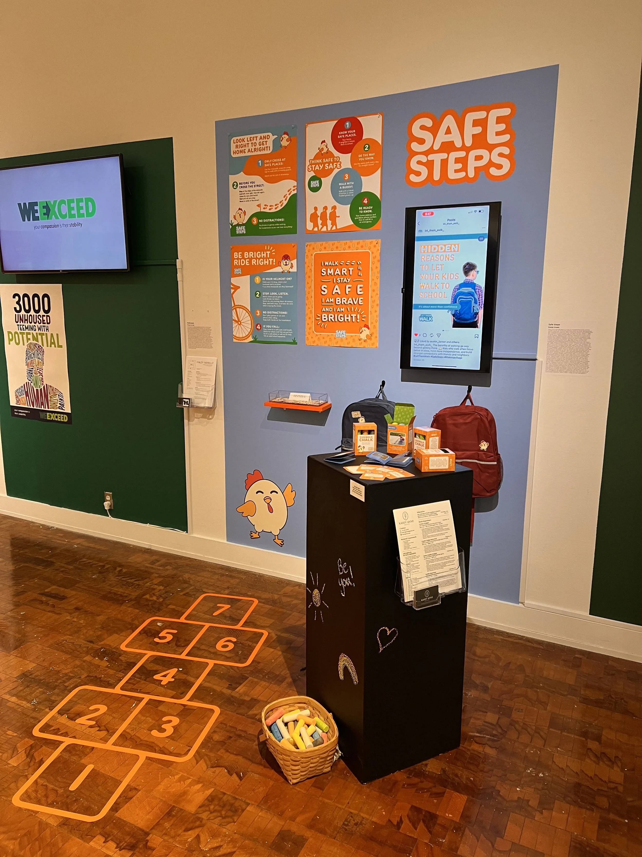 Safe Steps was displayed in Lambla Gallery at UNC Charlotte Nov 21st – Dec 5th 2025. After the show, the posters were donated to Tega Cay Elementary School in Fort Mill, SC.