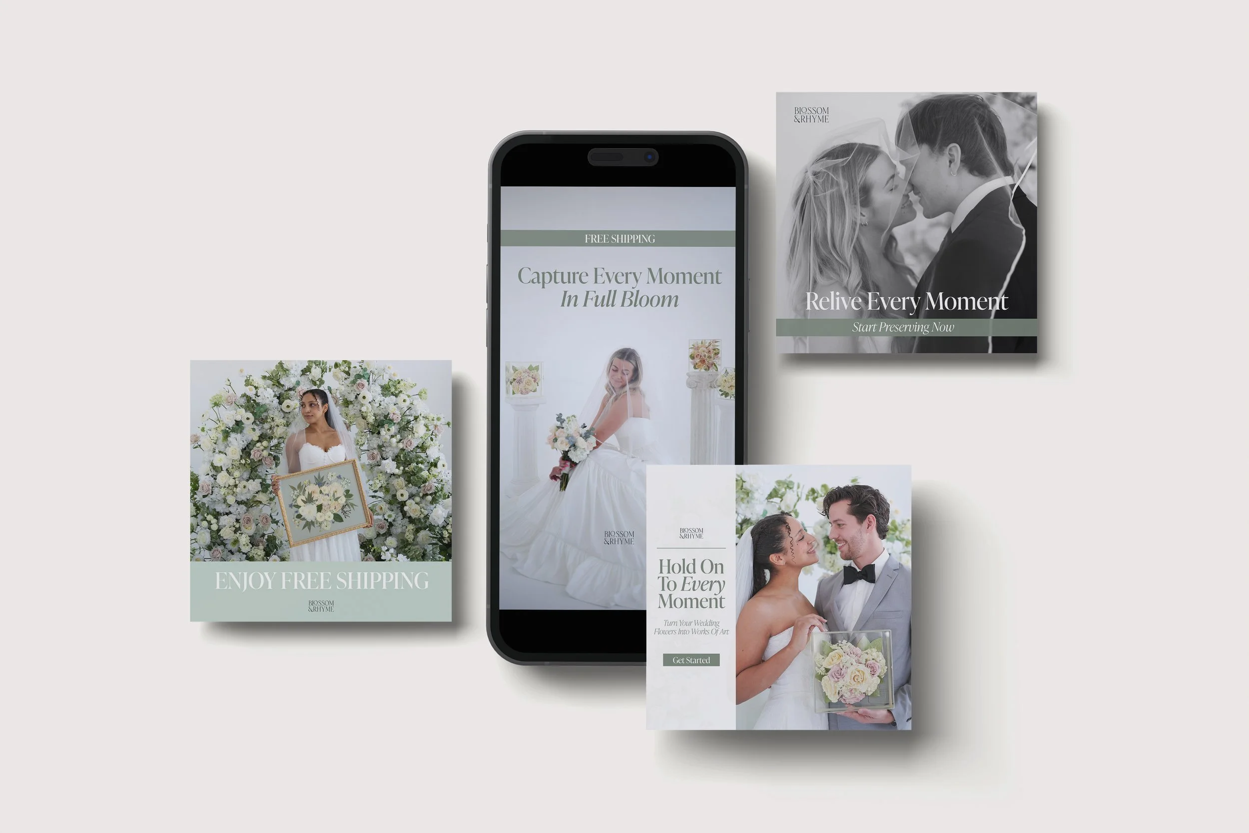 Blossom and Rhyme is a floral preservation company. As partners of The Social Rook they are in a rotating need of new advertisements for Meta.